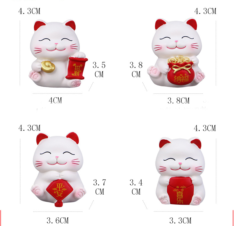 Bộ 04 tượng Mèo Thần Tài 4.3cm may mắn