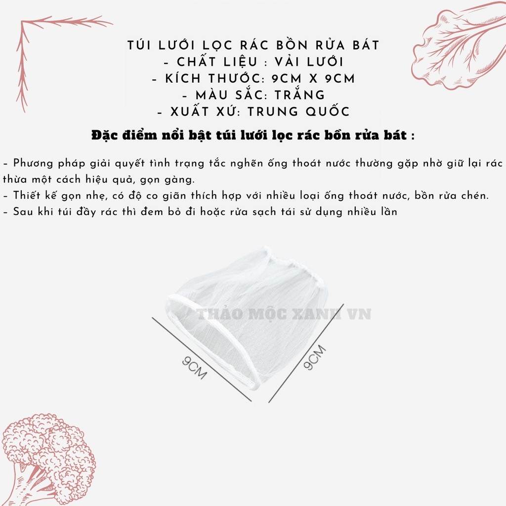 Túi lọc rác bồn rửa chén giúp cho bồn rửa chén không bị nghẽn tắc do rác, lọc cặn bẩn hiệu quả sau khi rửa chén.