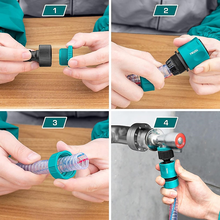 Bộ 5 khớp nối 1/2in dùng cho máy xịt rửa, tưới cây TOTAL THHCS05122 là sản phẩm được thiết kế để kết nối dây ống nước và các bộ phận còn lại của máy xịt rửa, tưới cây,