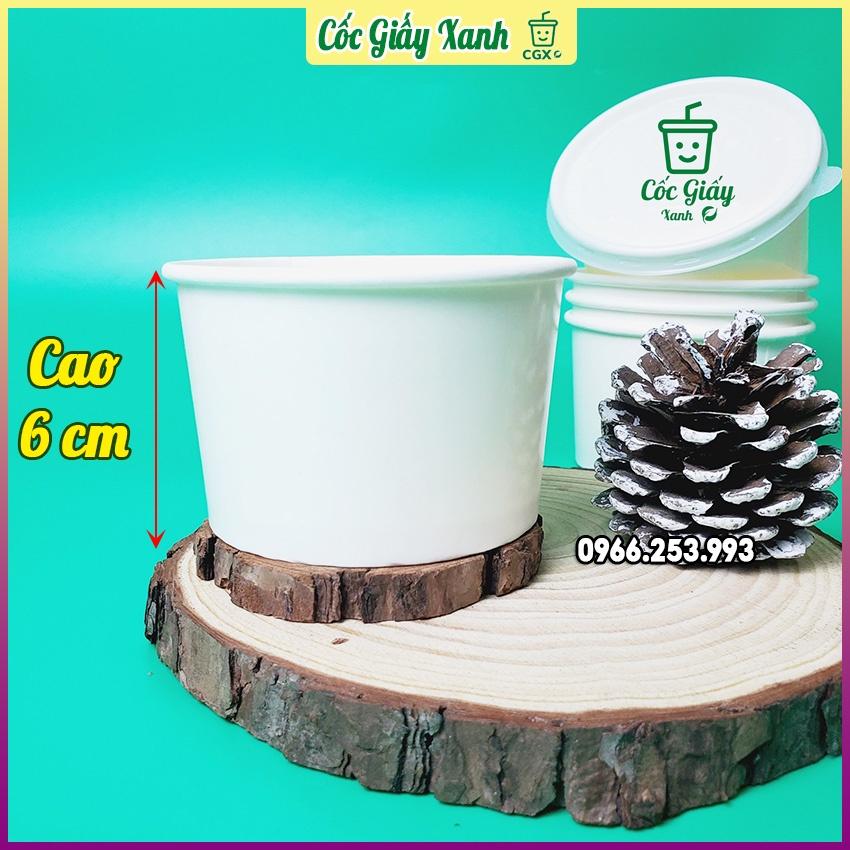 50 Tô Bát Giấy 300ml Trắng Trơn CÓ NẮP, Dùng 1 Lần, Giấy 2 Lớp PE Siêu Dày Dặn, Cứng Cáp