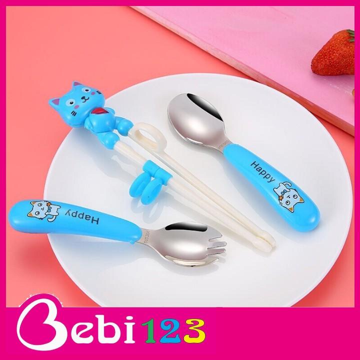 - Bộ sản phẩm gồm 1 đôi đũa tập ăn, 1 nĩa và 1 muỗng nhỏ vừa tay bé kèm hộp