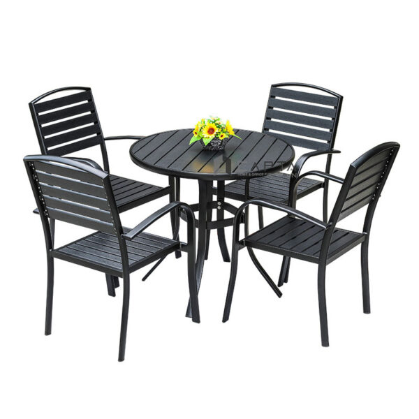 • Chất liệu: Mặt bàn viền nhôm, thanh gỗ nhựa Polywood màu đen / nâu / màu gỗ; chân bàn nhôm sơn tĩnh điện màu đen / kem
