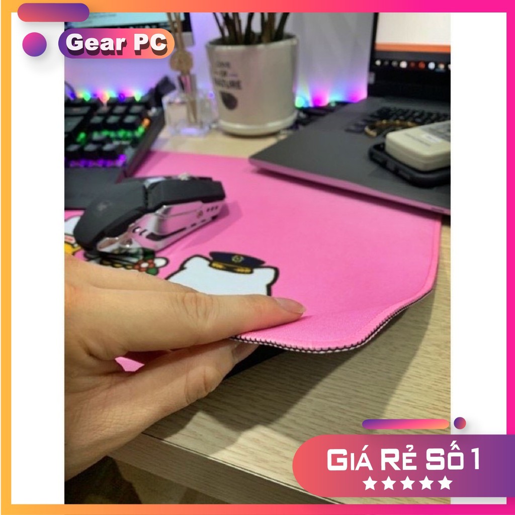 Lót chuột cỡ lớn 800x300mm hình Hello Kitty Hồng Bàn di chuột dễ thương vải mịn bo viền chắc chắn