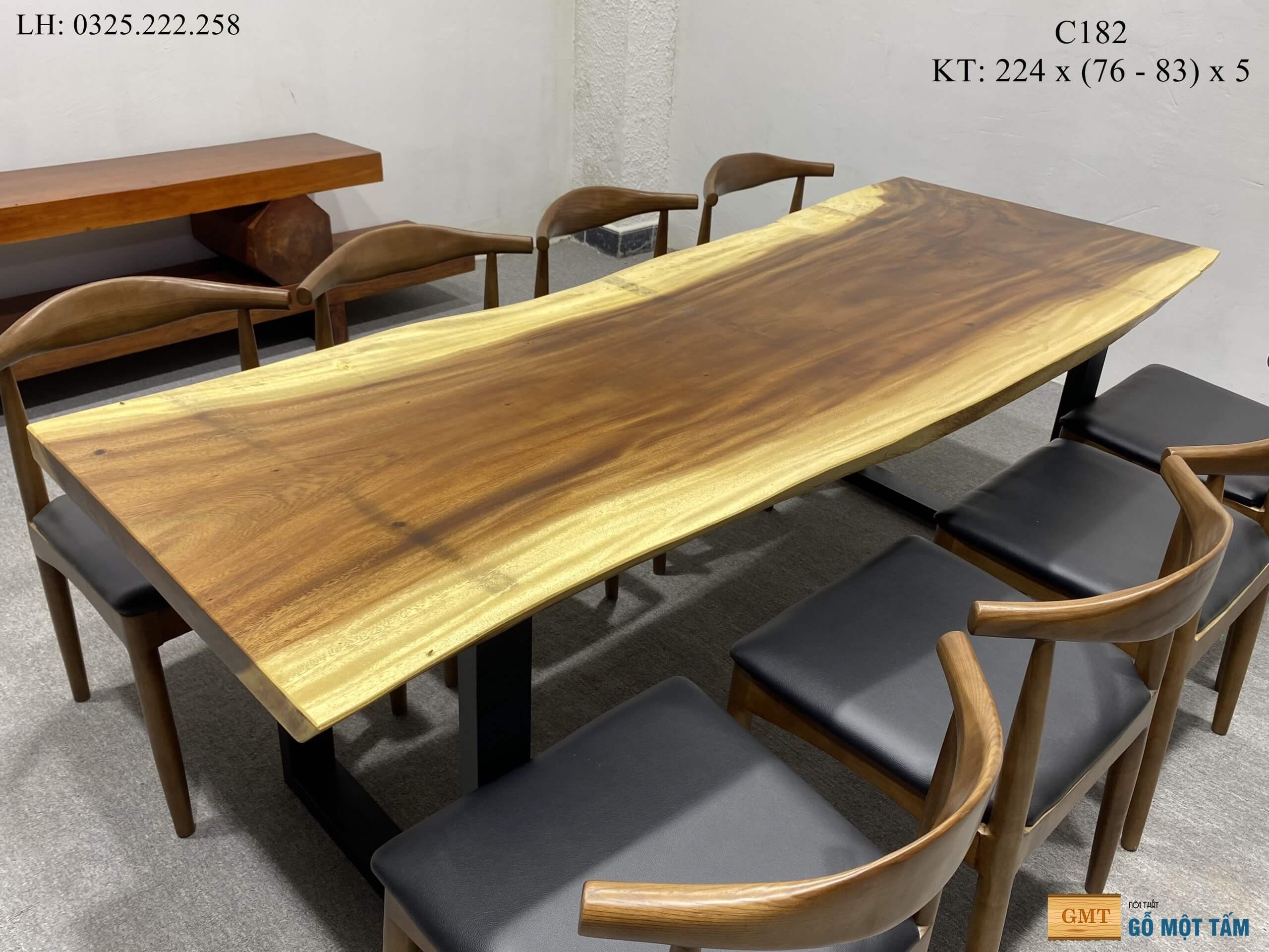 Bàn gỗ me tây nguyên tấm cạnh tự nhiên.