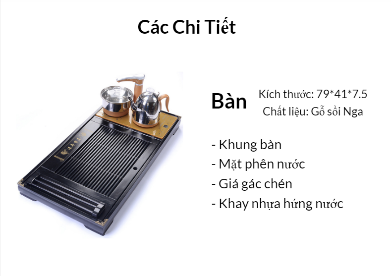 Phần khay bàn được làm bằng gỗ gỗ sồi Nga, đã qua xử lý chống thấm, chống mối mọt, cong vênh.