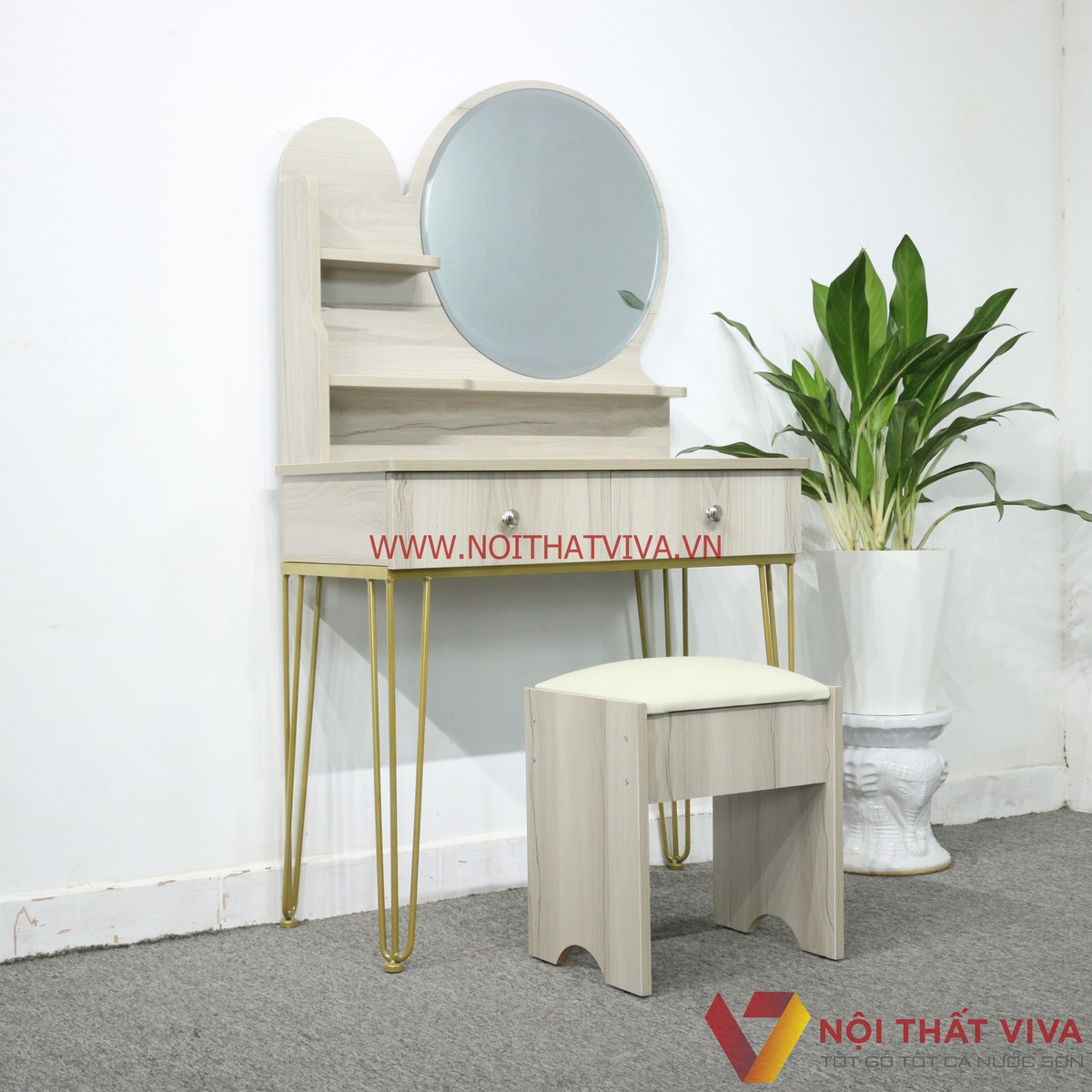 Bàn trang điểm (hay bàn phấn) là món đồ nội thất có ý nghĩa đặc biệt đối với những “tín đồ” yêu thích make up. Đồng thời góp phần trang trí cho phòng ngủ thêm phần thanh lịch, ấn tượng. Để có thể chọn được cho mình mẫn sản phẩm ưng ý nhất, Nội thất Viva xin giới thiệu đến bạn mẫu sản phẩm Bàn Trang Điểm Gỗ MDF Melamine Màu Sữa Chân Sắt 2 Ngăn Kéo Gương Tròn BP-1548.