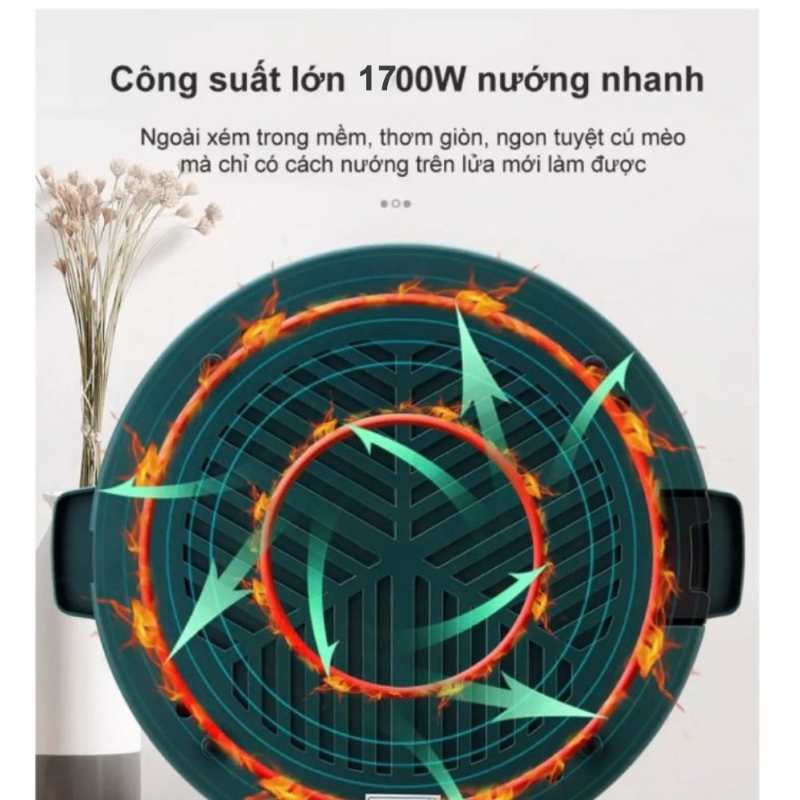 - Công suất cực đại của bếp lẩu nướng tròn không khói là 1350W đủ lớn để thực phẩm chín vàng hơn, mang tới khẩu vị vừa miệng hơn nướng qua bếp than mà không gây cháy khét.