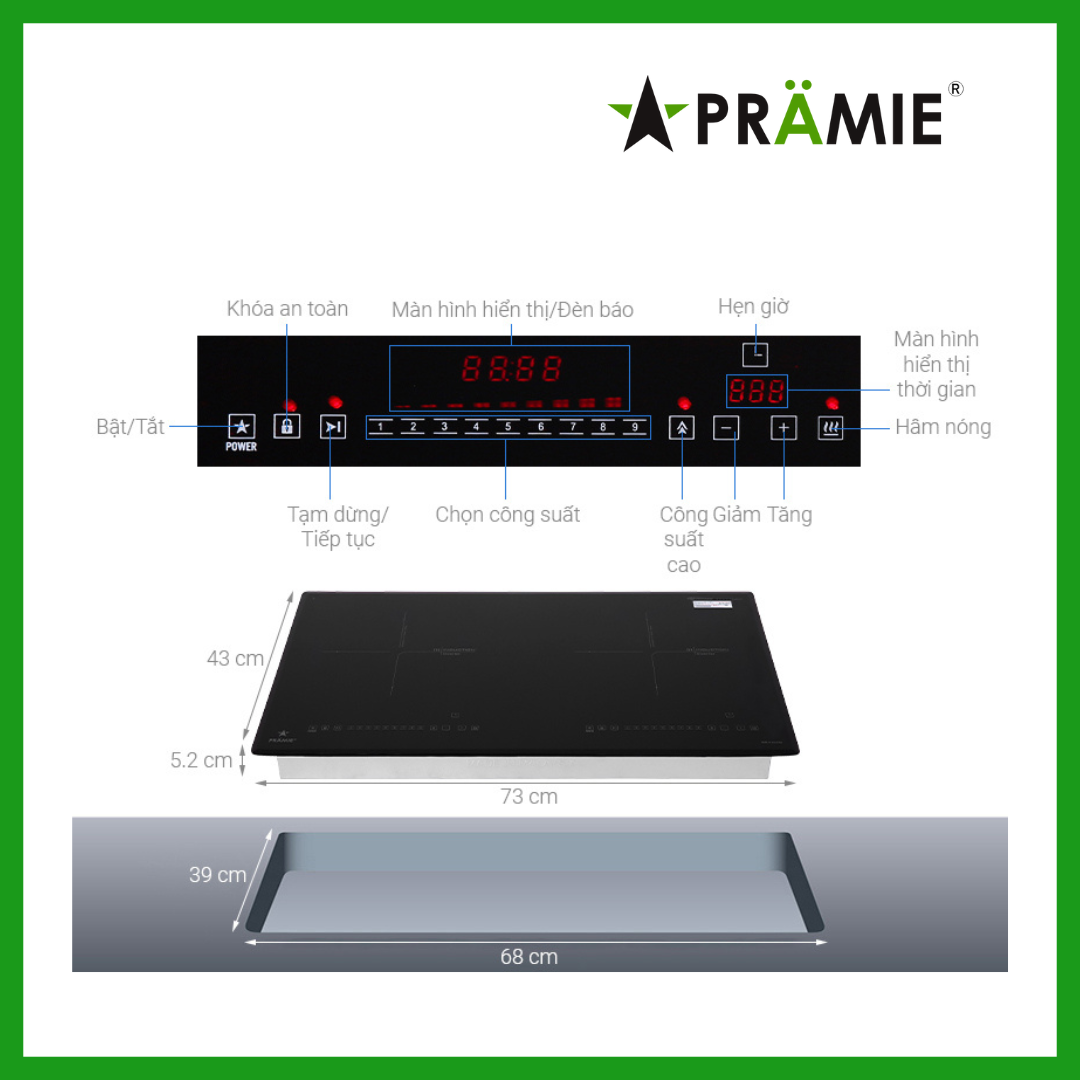 • Công suất vùng nấu: Trái: 2200/3000W - Phải: 2200/3000W