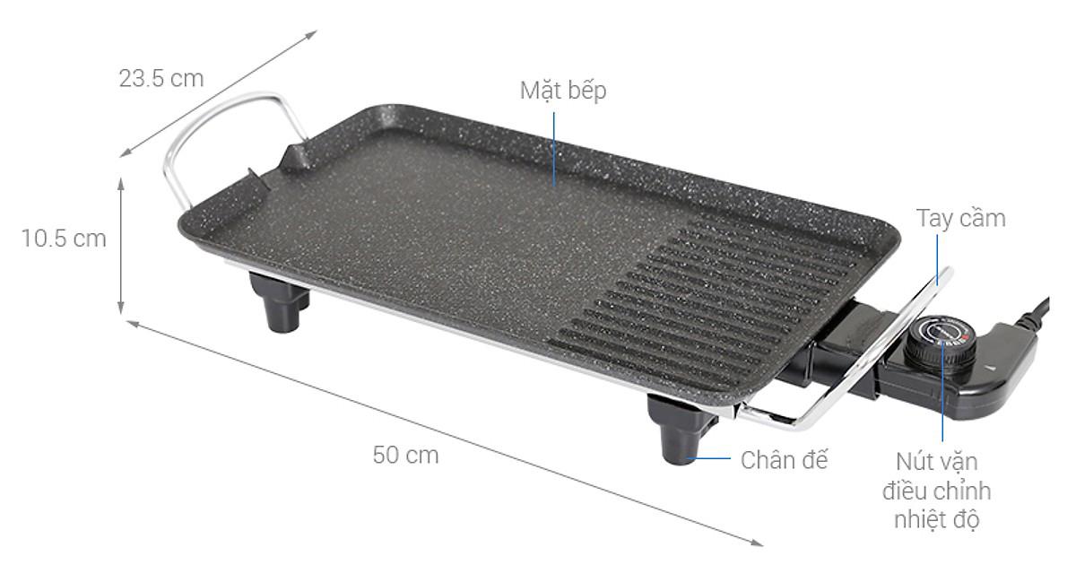 Mặt bếp được làm từ nhôm cao cấp, kích thước rộng rãi, dễ dàng đáp ứng nhu cầu sử dụng thực phẩm cho bữa tiệc đông người. Trên bề mặt bếp được phủ 2 lớp chống dính siêu bền, làm giả đá rất đẹp và bắt mắt.