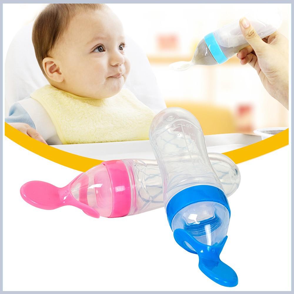 - Khi bón cho bé, bóp nhẹ phần thân bình silicon để thức ăn đẩy lên cho bé ăn