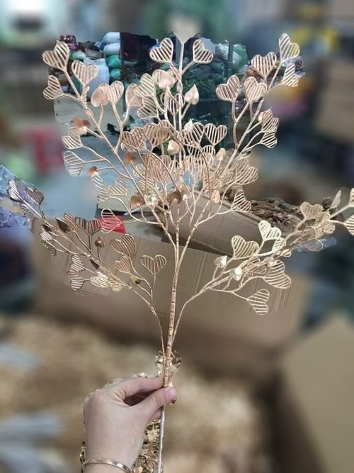 Cành lá giả kim, nhũ vàng – Hoa lụa decor trang trí Tết – Nhiều mẫu – Cành đào đông, rẻ quạt, tai chuột, trái tim, bồ công anh, dương xỉ.