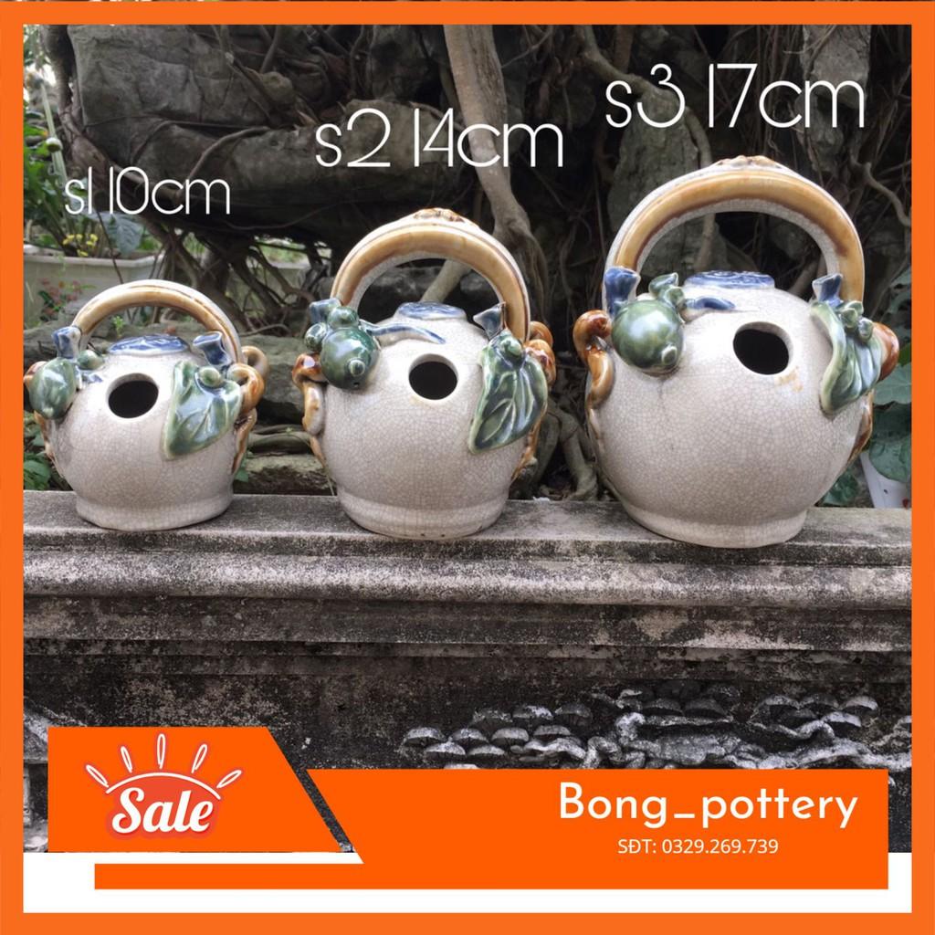 Bình vôi đồ thờ phong thủy - ông bình vôi đồ thờ cúng phong thủy đựng vôi men rạn cổ gốm sứ Bát Tràng mang tài lộc mm