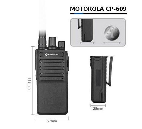 Bộ đàm Motorola CP609 được sử dụng nhiều trong môi trường khắc nghiêt. Cấu tạo Motorola CP309 nồi đồng cối đá, pin dùng lâu, gọi đi Sản phẩm máy bộ đàm của Motorola được xem là sản phẩm chất lượng được nhiều khách hàng tin tưởng lựa chọn. Đặc biệt là với máy bộ đàm Motorola CP609 có nhiều ưu điểm chịu va đập, rơi rớt trong môi trường xây dựng