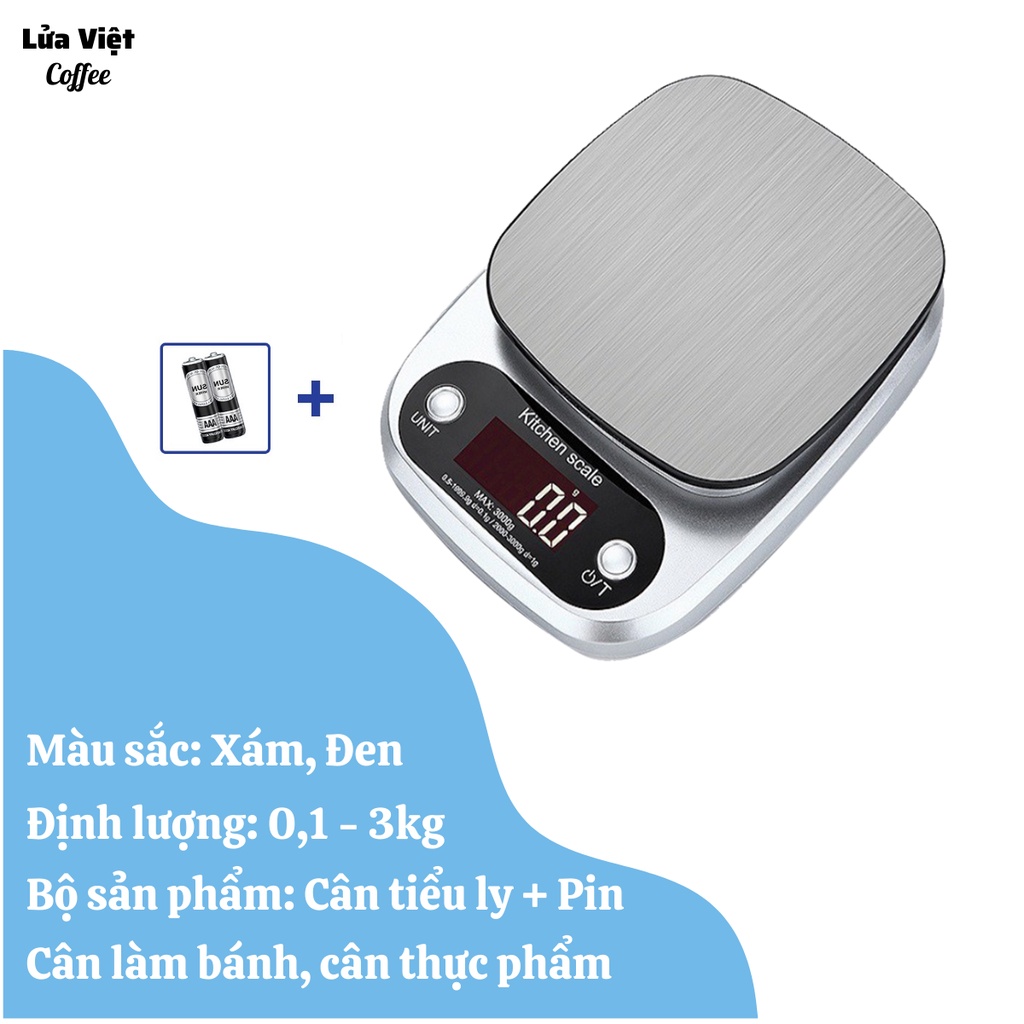 Cân Tiểu Ly điện tử mini định lượng 0.01g - 3kg i2000 độ chính xác cao Làm Bánh Cân tiểu ly 3kg cao cấp Thép Không Gỉ