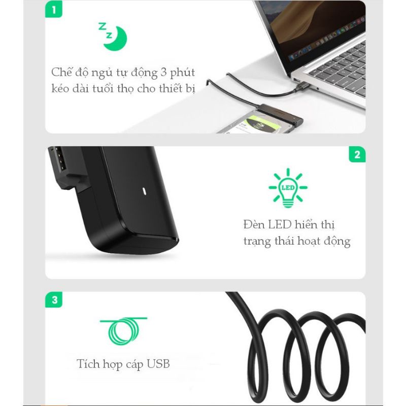 Giới thiệu Cáp chuyển đổi hai loại USB 3.0 và USB type C sang Sata (7+15) cho ổ cứng ngoài SSD, HDD 2.5 inch, dài 50cm UGREEN CM321