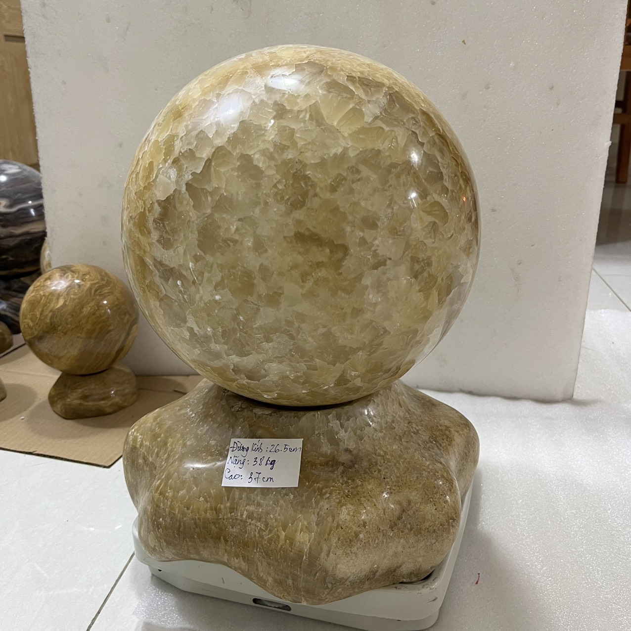 | Kích thước (Dài x Rộng x Cao) | Đường kính: 26.5 cm, cân nặng cả đế 38 kg (sản phẩm bao gồm quả cầu và chân đế cùng màu, cùng chất đá như hình) |