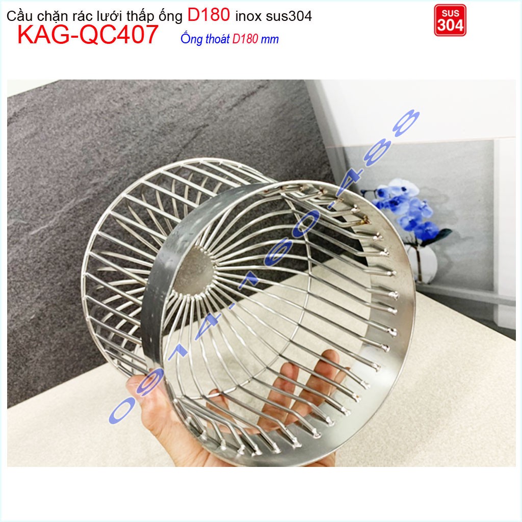 Cầu chắn rác lưới đế thấp KAG-QC407 -ống D180, Cầu thoát nước mưa SUS304 inox dày cao cấp
