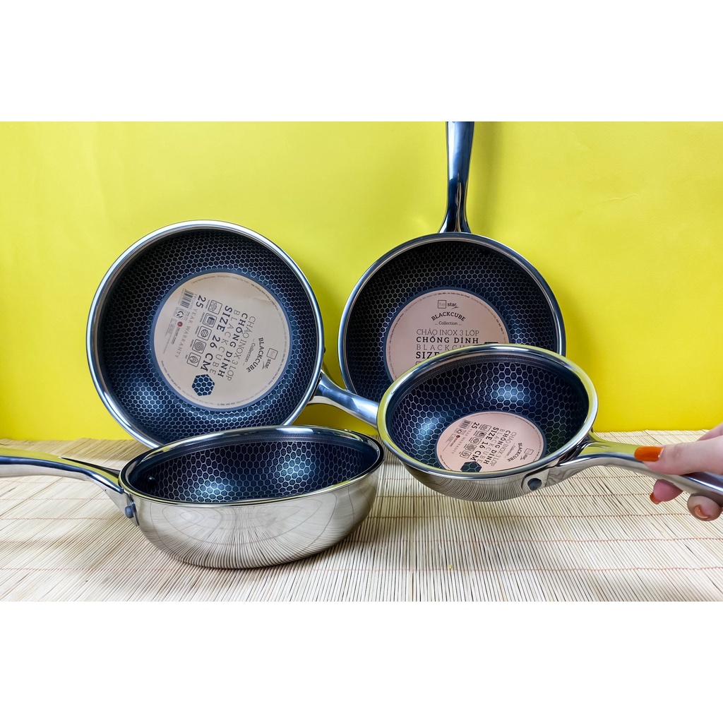 Giới thiệu Chảo Sâu Lòng FiveStar Blackcube Đáy Từ Inox 3 Lớp Đúc Liền - 16cm, 20cm, 24cm, 26cm, chảo tổ ong blackcube chống dính