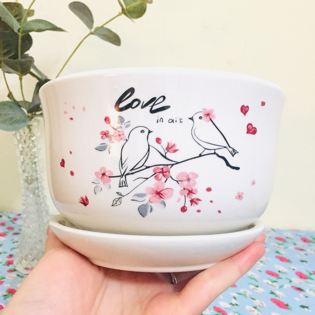 🌸 Chậu gốm sứ trồng cây, chậu trồng hoa để bàn văn phòng, trang trí cửa sổ, chậu để ban công, chậu trồng cây mini kèm đĩa hứng nước chống rò rỉ khi tưới nước cho cây.