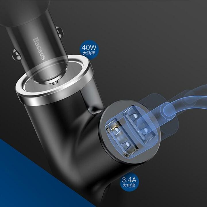 - Tính năng cơ bản Bộ tẩu sạc mở rộng 3 trong 1 dùng cho xe hơi Baseus Y Type Dual USB (40W, 3.4A Fast Charge, Intelligent Car charger)
