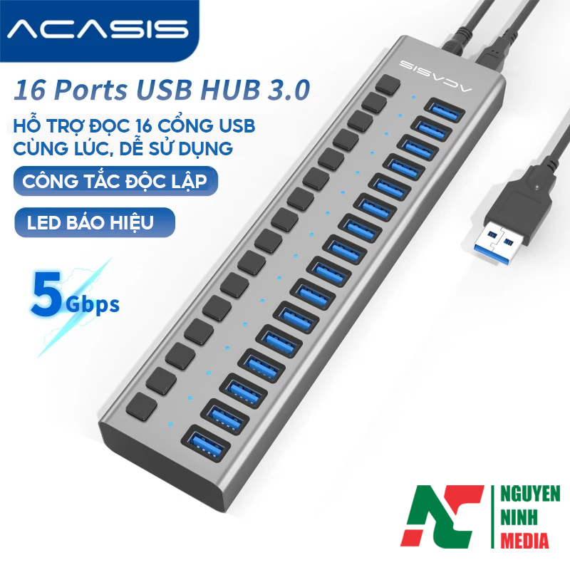 Bộ chia USB 16 cổng này có công tắc BẬT và TẮT tích hợp với đèn LED chỉ báo cho mỗi cổng. Bạn có thể bật / tắt cổng USB riêng biệt mà không cần phải rút toàn bộ bộ chia.