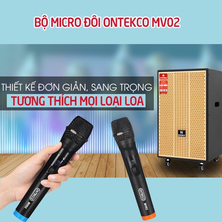 Giới thiệu [CHÍNH HÃNG] Bộ 02 Micro hát karaoke ONTEK MV02 bản nâng cấp, hút âm tốt, chống hú cho loa kéo, dàn âm thanh
