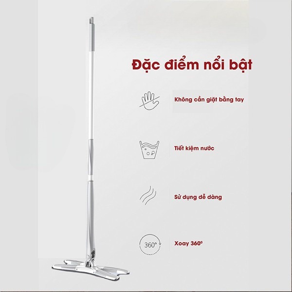 - Cây lau nhà đa năng tích hợp vắt trên thân thông minh đầu lau xoay 360 độ tiện ích với khả năng lau sạch sàn nhà một cách nhanh chóng và nhẹ nhàng, phù hợp với mọi loại bề mặt sàn như sàn gạch, sàn gỗ, sàn đá, tường ốp gạch và mặt kính, phù hợp với mọi không gian và diện tích nhà có thảm lau sợi vải đa tầng mềm mịn thấm hút tốt lấy sạch từ tóc đến bụi mịn. được thiết kế thông minh và cực kỳ gọn gàng giúp tiết kiệm không gian bảo quản đặc biệt là nhà chung cư hoặc các căn nhà có không gian hạn chế.