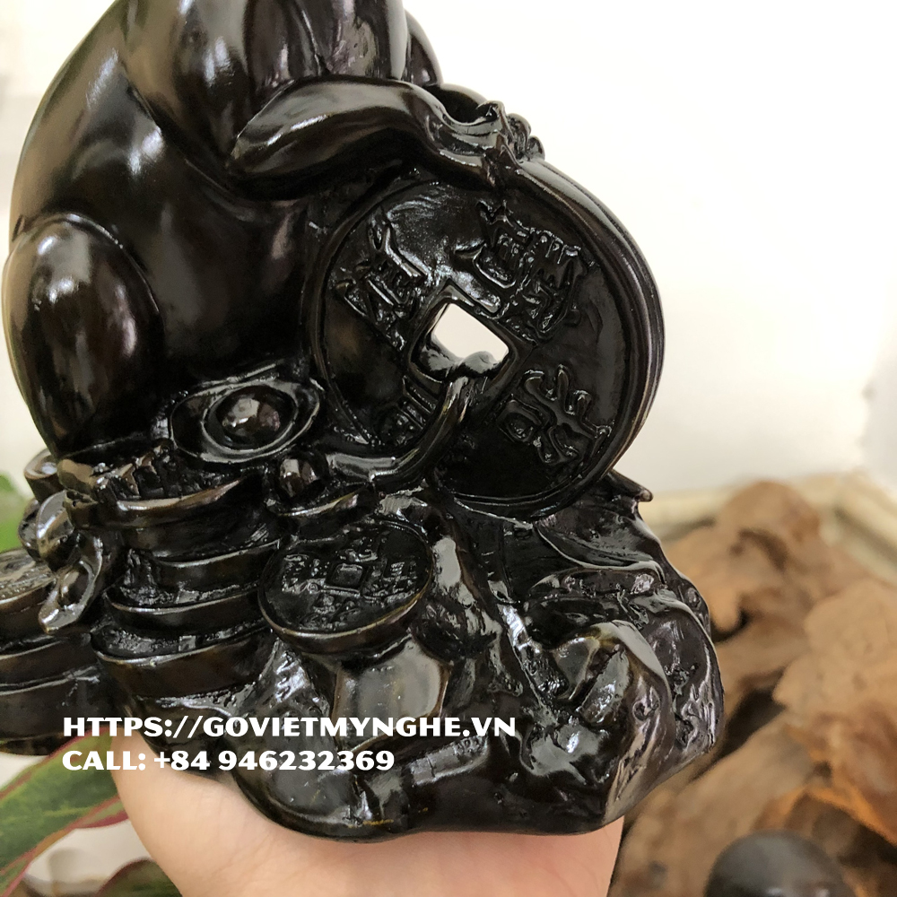 Tượng đá trang trí phong thủy tượng Chuột ôm tài lộc phong thủy cho gia chủ - Chiều cao 17cm - Nâu đen