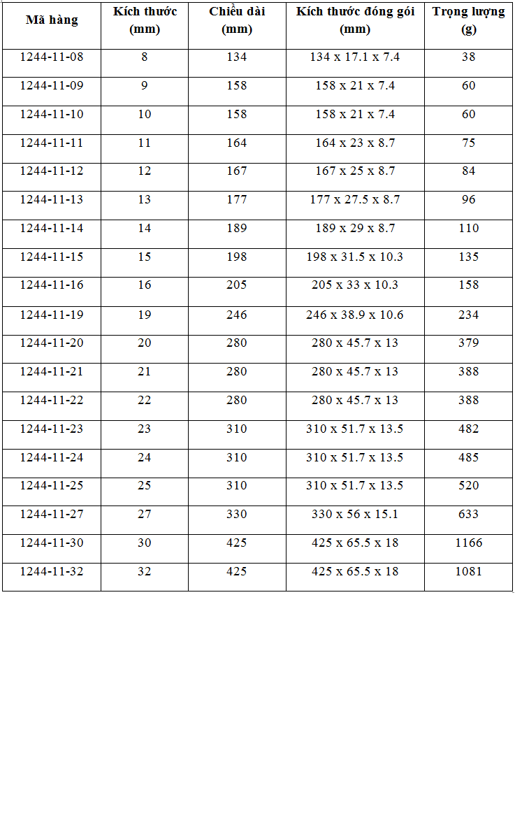 - Gồm các kích thước vòng miệng từ 8 - 32mm: