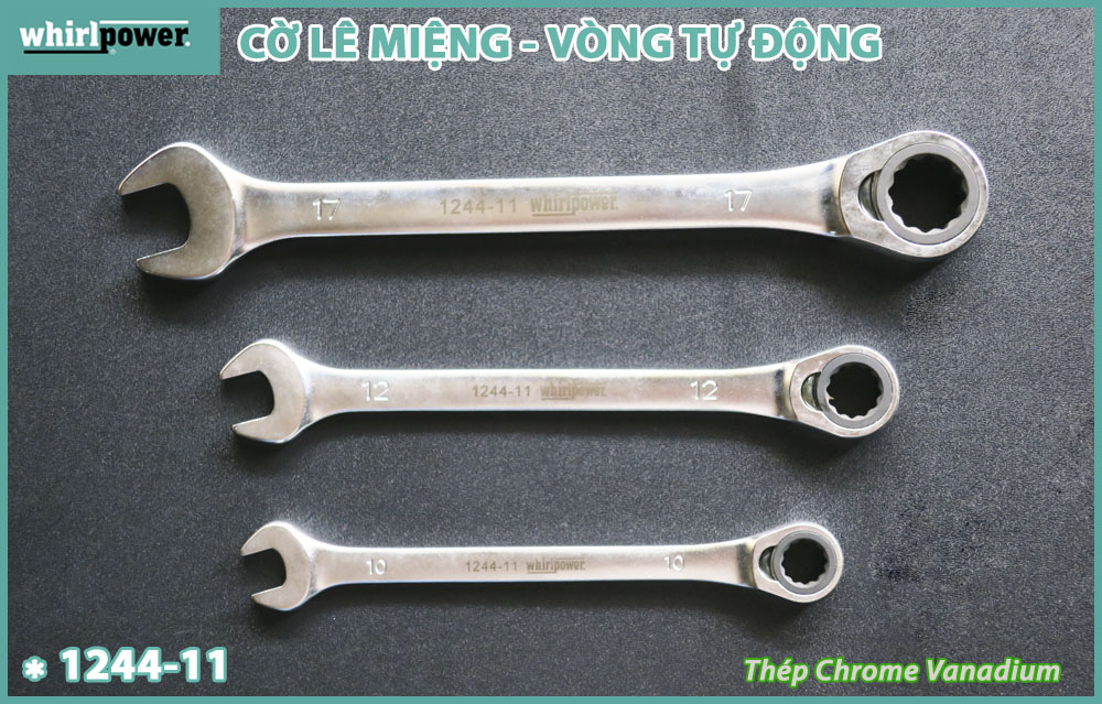 - Cờ lê vòng miệng - đầu vòng tự động Whirlpower 1244-11 có một đầu miệng và một đầu vòng tự động giúp tăng lực vặn và tháo lắp dễ dàng. Đầu vòng có khả năng xoay góc linh hoạt.