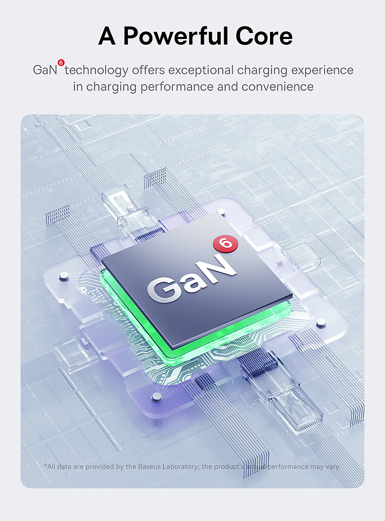 • Công Nghệ GaN (Gallium Nitride): Thiết bị sử dụng công nghệ GaN để làm giảm kích thước mà vẫn duy trì công suất và hiệu suất cao. Điều này giúp sản phẩm nhẹ nhàng và tiện lợi cho di chuyển.