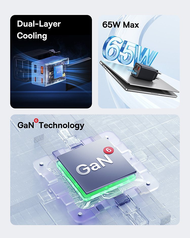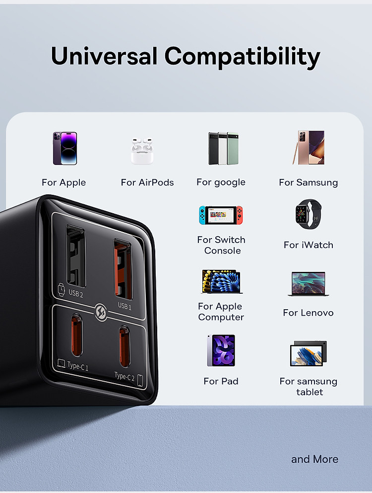 • Công Suất 65W: Với công suất 65W, cốc sạc này cung cấp sạc nhanh và hiệu quả cho điện thoại di động, máy tính bảng, laptop và nhiều thiết bị khác.