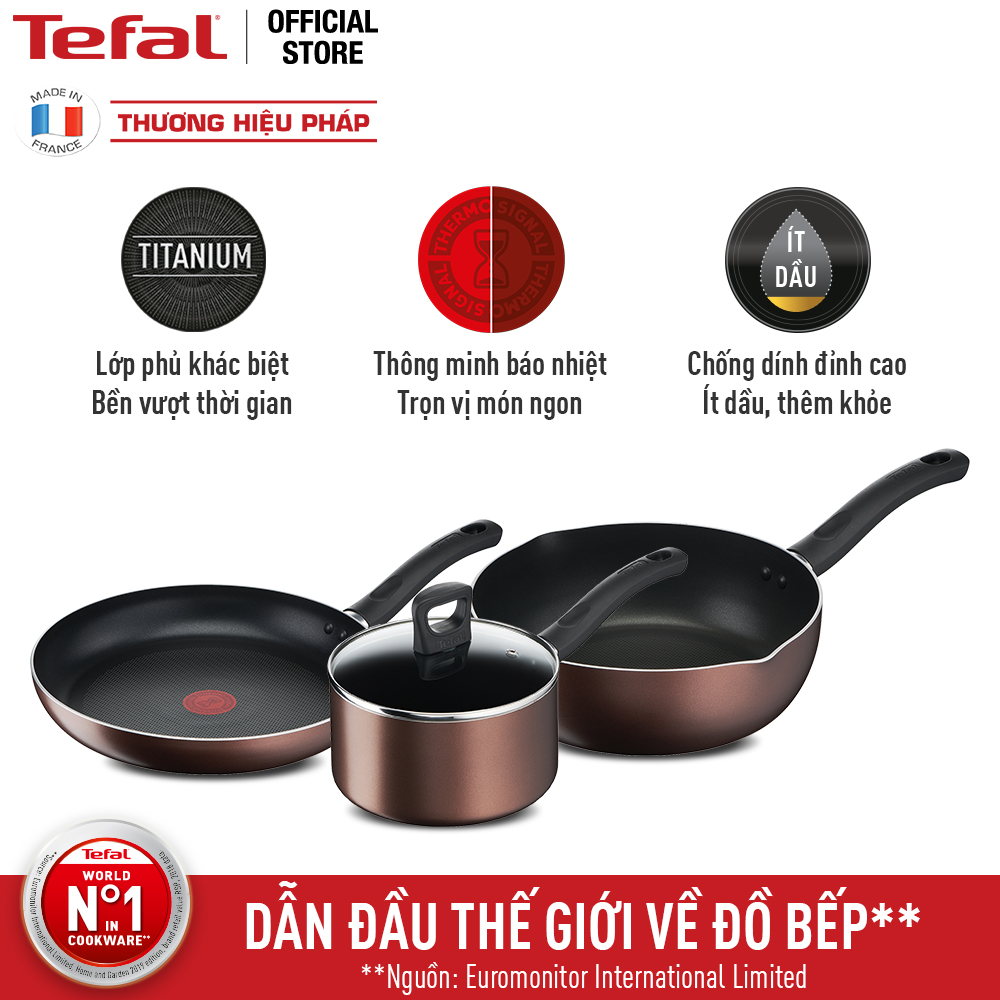 Bộ 3 nồi chảo chống dính đáy từ Tefal Day By Day dùng cho mọi loại bếp (nồi 18cm, chảo 24cm) - Hàng chính hãng