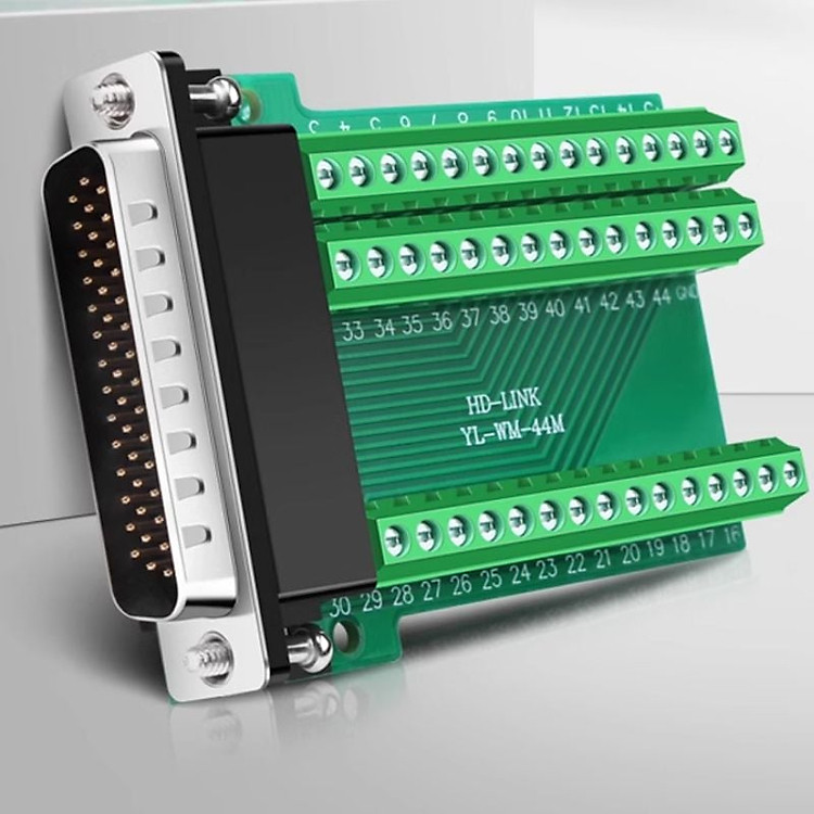 - Đầu bấm dây DB44, sẽ giúp cho việc thực hiện hoàn thanh nhanh chóng 1 Cáp DB44 nhanh chóng, chính xác, nhờ vào việc siết ốc bên trong bản mạch PCB. Người sử dụng có thể vặn nhẹ các ốc vít bên trong để nhấc đầu dây và chuyển thành đầu giao tiếp khác, DB44 đực sang DB44 cái, hoặc DB44 cái sang DB44 cái.v.v. Hoặc theo sơ đồ đấu nối của môt số thiết bị yêu cầu.