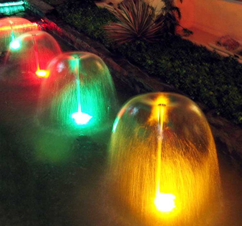 Dưới mỗi đầu phun thường được lắp đặt hệ thống đèn Led tạo hiệu ứng ánh sáng vào ban đêm. Khi ấy nó sẽ tạo nên hình ảnh lung linh, rực rỡ cả một không gian xung quanh.