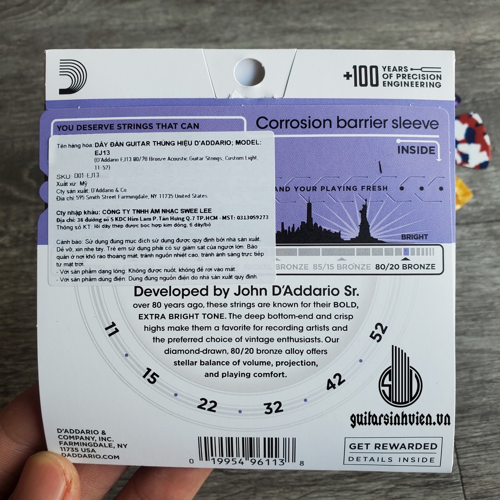 Giới thiệu Dây đàn guitar acoustic ADDARIO EJ13 chính hãng - Dây cao cấp cho âm thanh sắc nét - Tặng pick khi đặt hàng