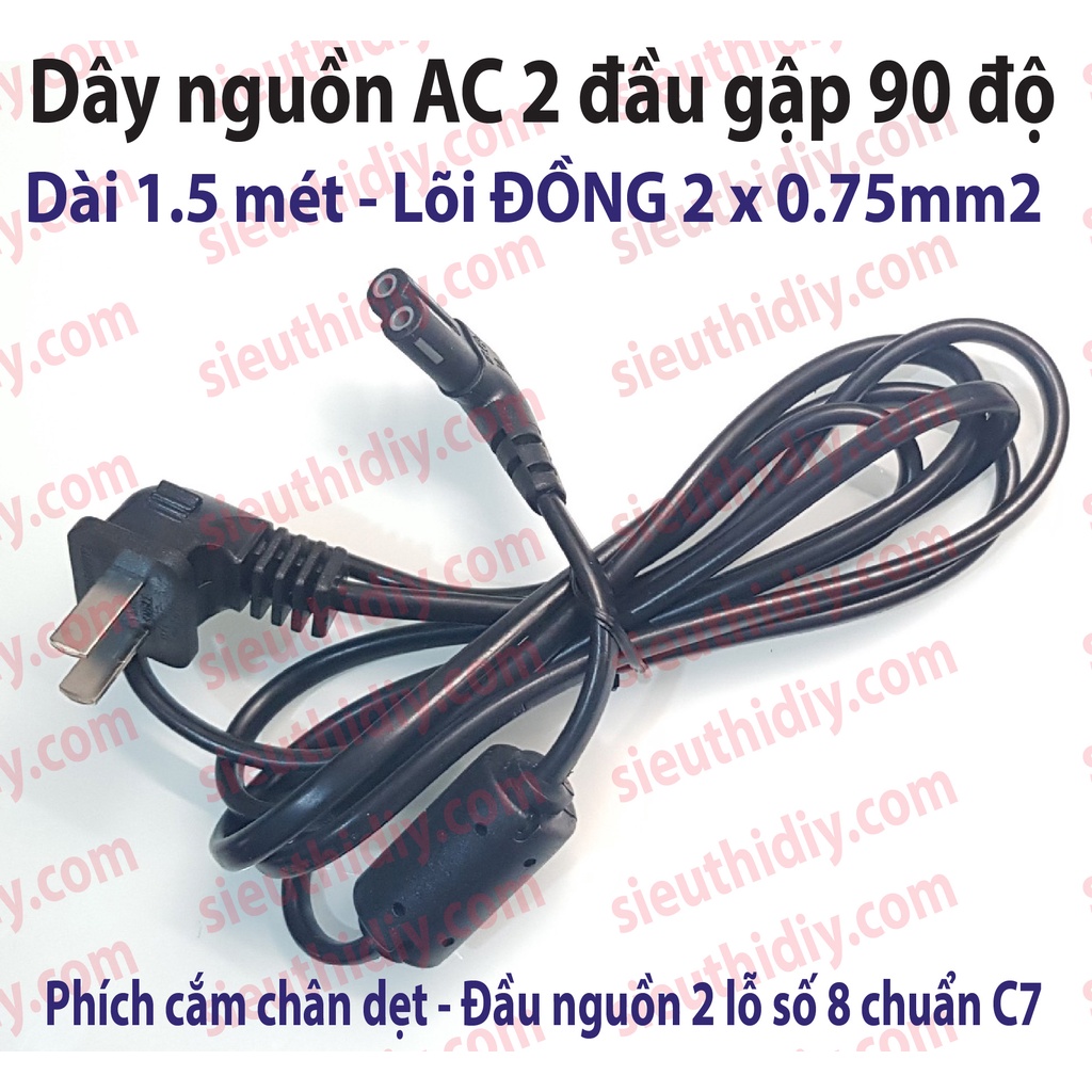 Thiết Bị Điện Gia Dụng > Mạch điện & Phụ tùng > Ổ cắm điện & Dây nối || Dây nguồn AC phích gập 2 đầu 90 độ - chống nhiễu