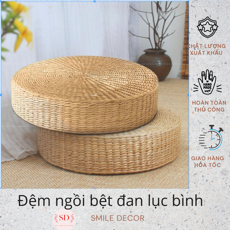 Sản phẩm được đan từ sợi lục bình (bèo) tự nhiên, mang phong cách vintage, đơn giản, thích hợp cho không gian thiền định, yoga, phòng trà... Với thiết kế đơn giản nhưng sang trọng, đệm ngồi bệt mang đến sự lịch thiệp, tinh tế cho không gian sống.