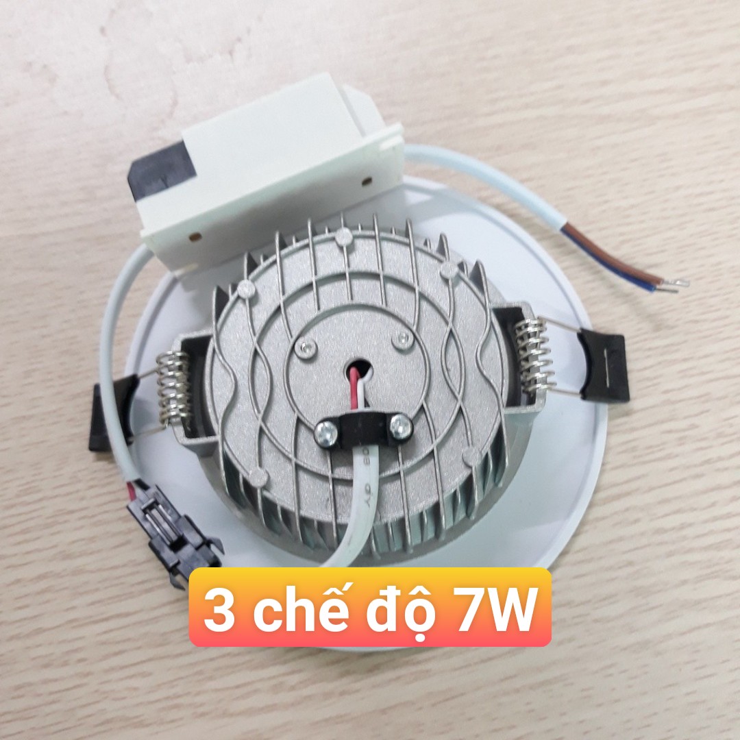 Đèn LED âm trần 3 chế độ màu 7w, trang trí trần nhà (viền vàng, )