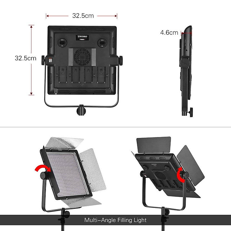 - Dùng 4 pin NP-970 ( khoảng 90 phút ở độ sáng cao nhất) hoặc Nguồn DC 19V-5A
