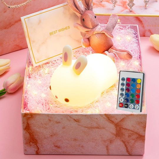 Đèn ngủ phát sáng thỏ nằm, cảm ứng đổi màu sắc khi chạm vào.