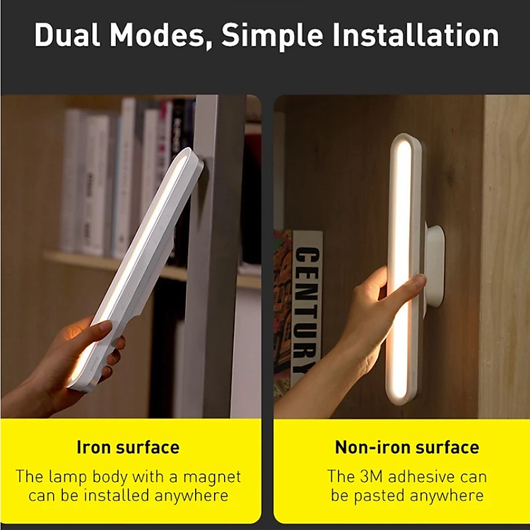 - Đèn treo đế hít nam châm Baseus Magnetic Stepless Dimming Charging Desk Lamp Pro có kích thước nhỏ gọn, thon dài giúp dễ cầm nắm, lắp đặt và di chuyển khi cần. Không chiếm nhiều diện tích khi trang bị.