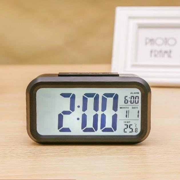 Giới thiệu sản phẩm Đồng hồ báo thức kỹ thuật số với đèn LED nền cảm biến đa chức năng: thời gian, lịch, báo thức, nhiệt độ - LC01 (trắng)