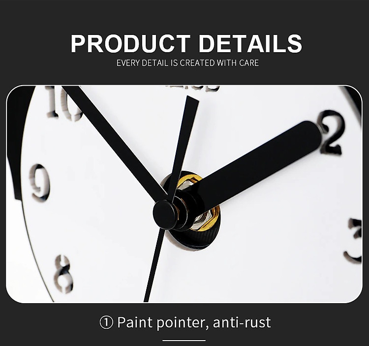 Bên cạnh việc sử dụng acrylic cao cấp của đài Loan để chế tác ra mặt đồng hồ treo tường, chúng tôi còn trang bị máy đồng hồ kim trôi và máy dao động con lắc cao cấp, được nhập khẩu từ đài loan. Giúp cho sản phẩm vận hành êm ái, không gây tiếng ồn vào ban đêm ảnh hưởng đến giấc ngủ của bạn và gia đình.