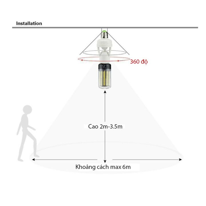 • - Đui đèn cảm biến hồng ngoại E27 tự động bật tắt khi phát hiện chuyển động, tiện lợi, tiết kiệm điện. Đui đèn cảm ứng phù hợp đèn cầu thang, nhà vệ sinh, hành lang, an toàn sử dụng.