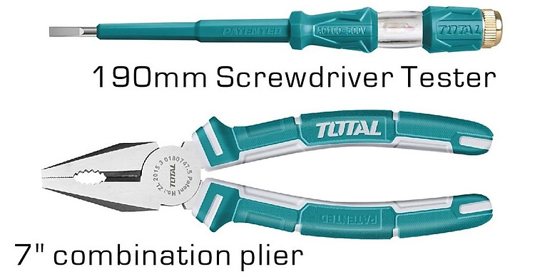 Đa dạng các công cụ: Bộ công cụ TOTAL THKTHP90076 bao gồm 7 dụng cụ khác nhau, cung cấp các công cụ cần thiết để thực hiện các công việc cơ bản. Điều này bao gồm thước, dao, kềm, tua vít, mỏ lếch, bút thử điện