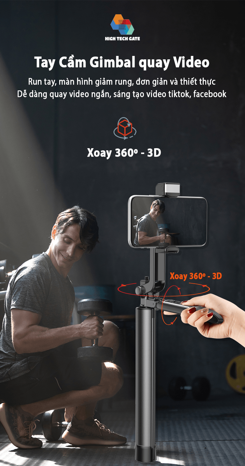Cải tiến về thiết kế thêm trục Cardan, giúp gậy có thể chụp với mọi góc độ 3D, ngang dọc, trái phải, hay nghiêng thấp cao đều được.