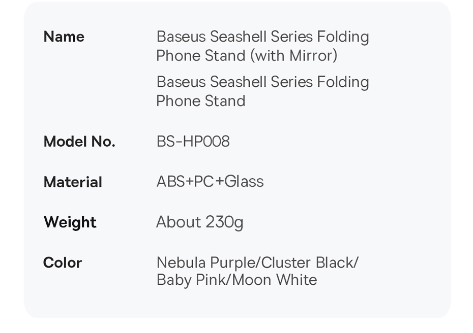 | Tên | Giá Đỡ Điện Thoại Xếp Gọn Baseus Seashell Series Folding Phone Stand |