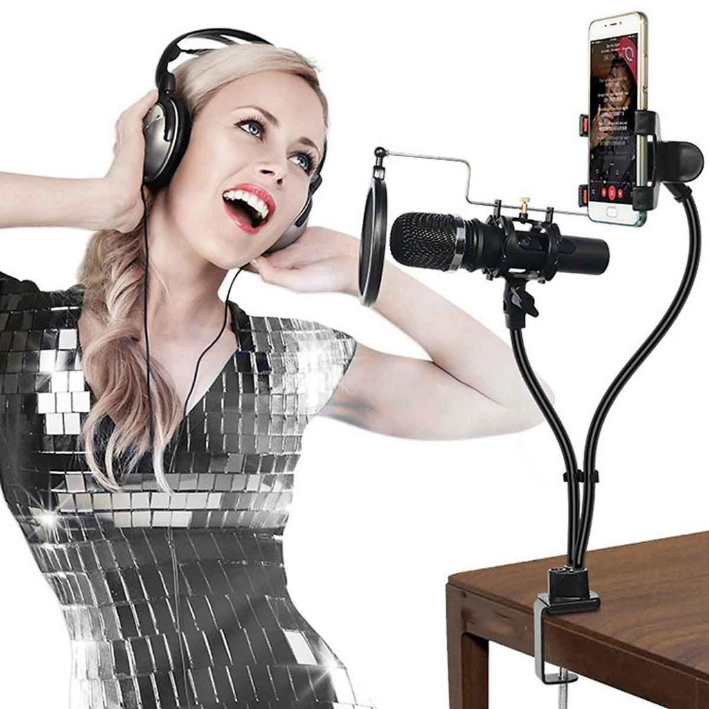 Về phần giá treo micro, được thiết kế bằng kim loại với nhiều chốt tùy chỉnh góc đỡ, cùng với các dây lò xo kéo căng, càng tăng thêm phần bền bỉ và tiện dụng. Thêm vào đó là màng lọc âm chuyên dụng, khiến bộ sản phẩm của chúng ta trở nên chuyên nghiệp hơn rất nhiều.