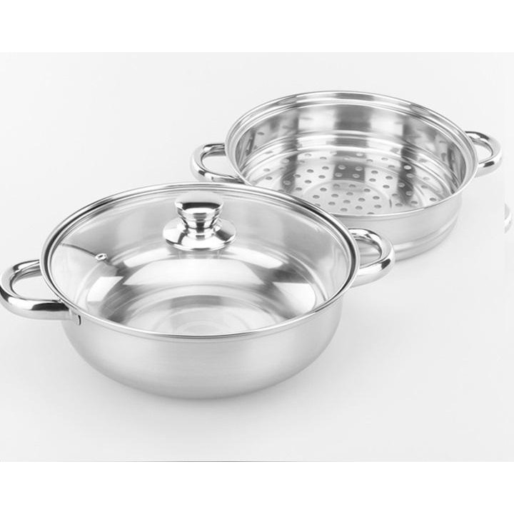 Giới thiệu [GIÁ TỐT NHẤT] Nồi hấp, Nồi lẩu inox 2 tầng KÈM Vung Kính 28cm dùng đc cho mọi loại bếp (Lucio Store)
